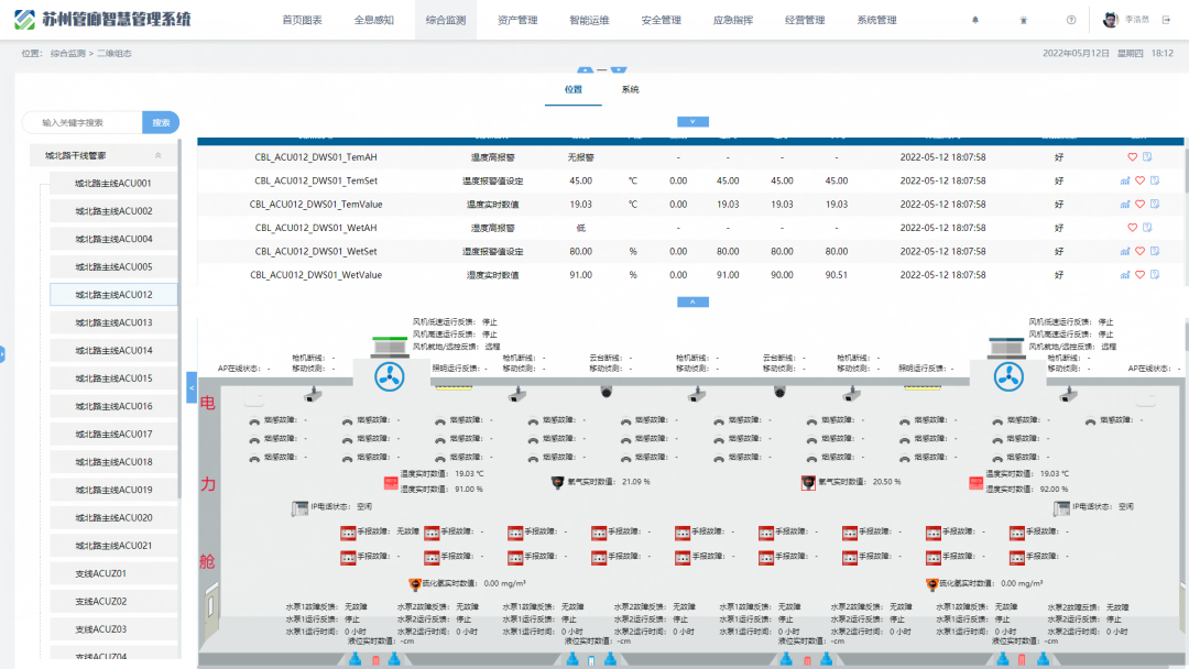 “數(shù)字孿生”賦能城北路地下綜合管廊智慧運(yùn)維發(fā)表時(shí)間:2024-04-26 09:00 地下綜合管廊是城市的“大動(dòng)脈”,是保障城市運(yùn)行的重要基礎(chǔ)設(shè)施。蘇州市進(jìn)一步提升管廊的安全管理和智慧運(yùn)營(yíng)水平,不斷加強(qiáng)地下綜合管廊信息化管理,管廊公司應(yīng)用“數(shù)字孿生”技術(shù)探索管廊的數(shù)字化運(yùn)維和全生命周期管理,達(dá)到了上下貫通,內(nèi)外可視,數(shù)據(jù)共享,管服一體的管理模式,在城市生命線上奏響一曲“安全+智慧”的交響樂。 ![]() 數(shù)字孿生管廊平臺(tái)指的是在數(shù)字空間建立真實(shí)管廊的模型,并通過傳感器實(shí)現(xiàn)與管廊真實(shí)狀態(tài)的實(shí)時(shí)同步。模型建成后,在管廊的日常運(yùn)維中數(shù)字孿生管廊與真實(shí)管廊繼續(xù)進(jìn)行信息交互,通過數(shù)據(jù)整合可以監(jiān)測(cè)設(shè)施設(shè)備的運(yùn)行狀態(tài)。 目前數(shù)字孿生技術(shù)在城北路管廊已全面應(yīng)用,蘇州城北路管廊數(shù)字孿生管廊平臺(tái)從2020年4月啟動(dòng)建設(shè),2022年8月啟用,經(jīng)過一年多時(shí)間的實(shí)踐應(yīng)用,在管廊全息展示、傳感數(shù)據(jù)預(yù)測(cè)、故障維護(hù)救援分析,運(yùn)維成本控制等方面都起到了良好的示范作用。 勾勒管廊全息“影像” 數(shù)字孿生管廊平臺(tái)首先要感知、建模,然后才是數(shù)據(jù)分析整合,如果沒有對(duì)管廊現(xiàn)實(shí)實(shí)體的準(zhǔn)確“影像”,所有的分析處理就是無源之水。蘇州數(shù)字孿生管廊平臺(tái)率先運(yùn)用激光技術(shù)基于城北路管廊完成數(shù)字化建模,打造厘米級(jí)別的管廊數(shù)字孿生體,為管廊運(yùn)行優(yōu)化、人員安全、增容改造、管線入廊、設(shè)備維護(hù)等提供了空間參考和數(shù)字底座,實(shí)現(xiàn)管廊信息全息可視。