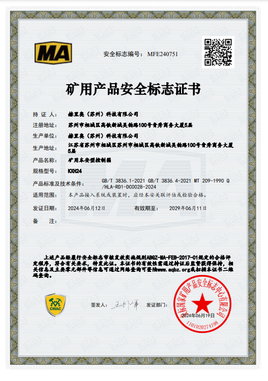 近日,赫里奧公司最新研發(fā)的礦用本安型控制箱成功通過(guò)了國(guó)家煤礦安全認(rèn)證(MA認(rèn)證)。這一重要里程碑標(biāo)志著赫里奧物聯(lián)網(wǎng)產(chǎn)品正式進(jìn)軍智慧礦山領(lǐng)域,為礦山安全和生產(chǎn)效率的提升提供有力保障。